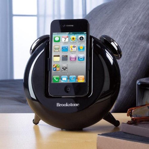 iDesign Retro Dock for iPod and iPhone Devices. Rotating dock with a cool vintage look becomes an alarm clock with a free app. Simply download the free Brookstone Retro Dock App from iTunes that includes alarm clock, 5-day weather forecast and sleep timer--essentials for ending or starting your day. Retro Dock also lets you fall asleep and wake to your favorite music, and charges your iPod or iPhone device while its docked. Features full-range stereo speakers, a snooze bar and an input jack for connecting most other MP3 players. Its the app-driven dock... with a twist! In addition to sending you off to sleep and waking you with an alarm or music, Retro Dock also rotates 90 degrees to position your iPod/iPhone device horizontally for viewing movies, TV shows, music videos and more. And youll enjoy it all with full, dynamic audio from Retro Docks built-in stereo speakers. iDesign Retro Dock for iPod and iPhone Devices puts a new spin on the old-school alarm clock. Order from Brookstone today! Made for: iPod touch (1st and 2nd generation) iPod classic iPod nano (4th and 5th generation) iPhone 4 iPhone 3GS iPhone 3G iPhone iPod/iPhone not included. iPhone and iPod, iPod touch, iPod classic and iPod nano are trademarks of Apple Inc., registered in the U.S. and other countries. "Made for iPod" and "Made for iPhone" mean that an electronic accessory has been designed to connect specifically to iPod or iPhone, respectively, and has been certified by the developer to meet Apple performance standards. Apple is not responsible for the operation of this device or its compliance with safety and regulatory standards. Please note that the use of this accessory with iPod or iPhone may affect wireless performance. iTunes is a trademark of Apple Inc., registered in the U.S. and other countries.